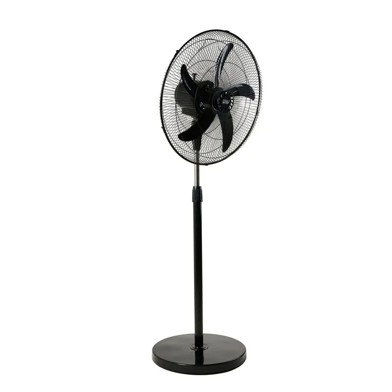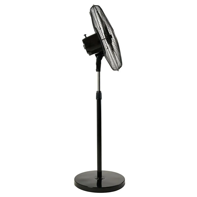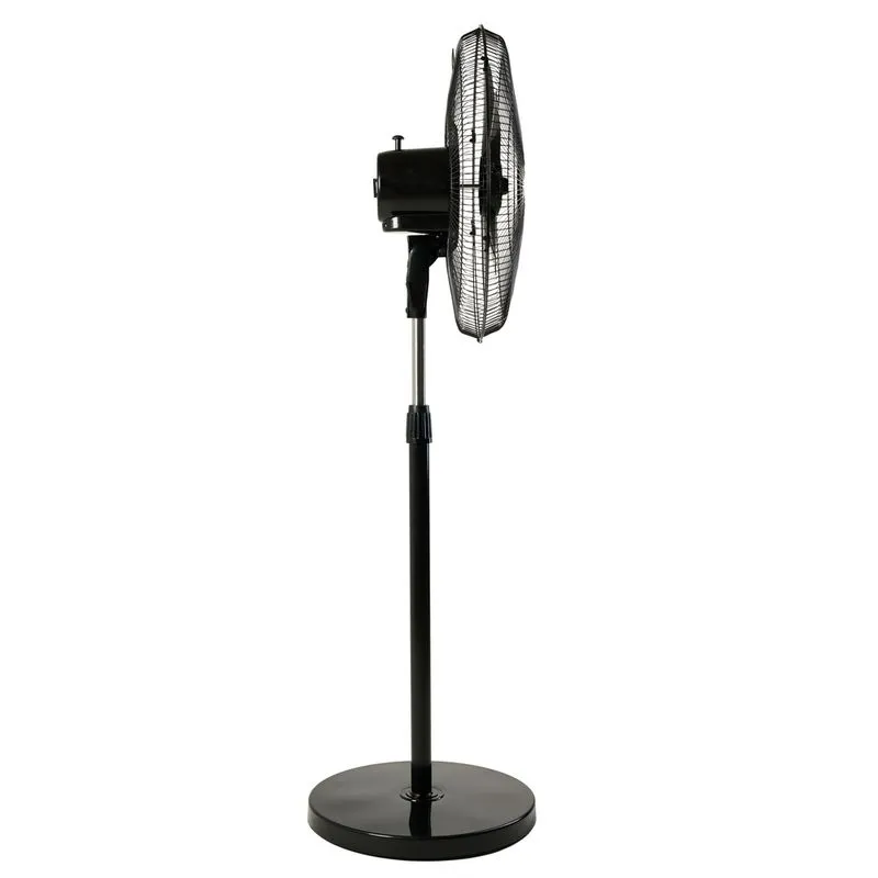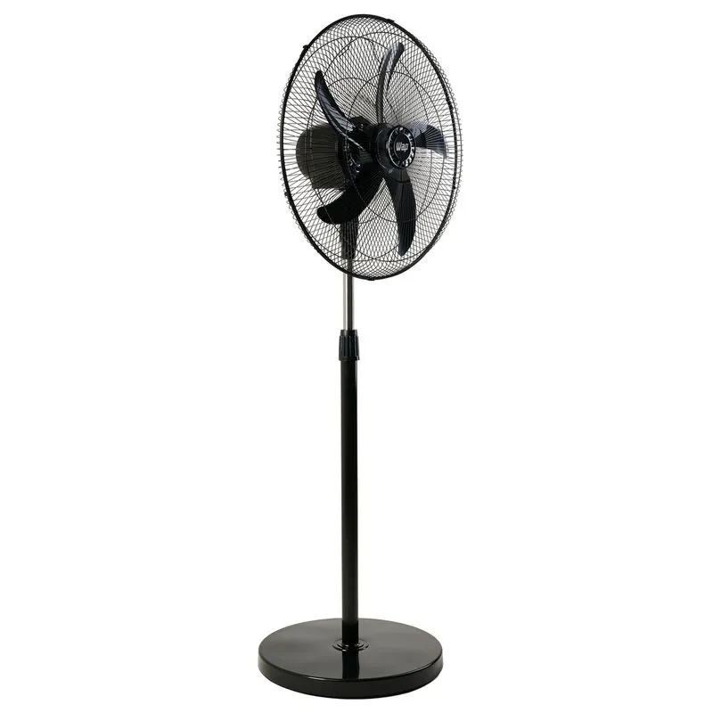 Componentes: Duas grades de proteção; Hélice com 5 pás; Controle de 3 velocidades; Trava de regulagem de inclinação; Botão acionador de oscilação; Base de coluna com regulagem de altura.